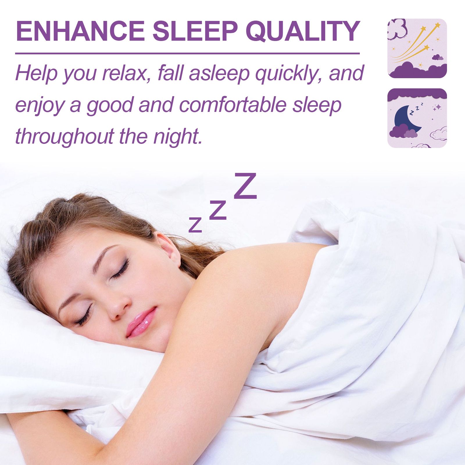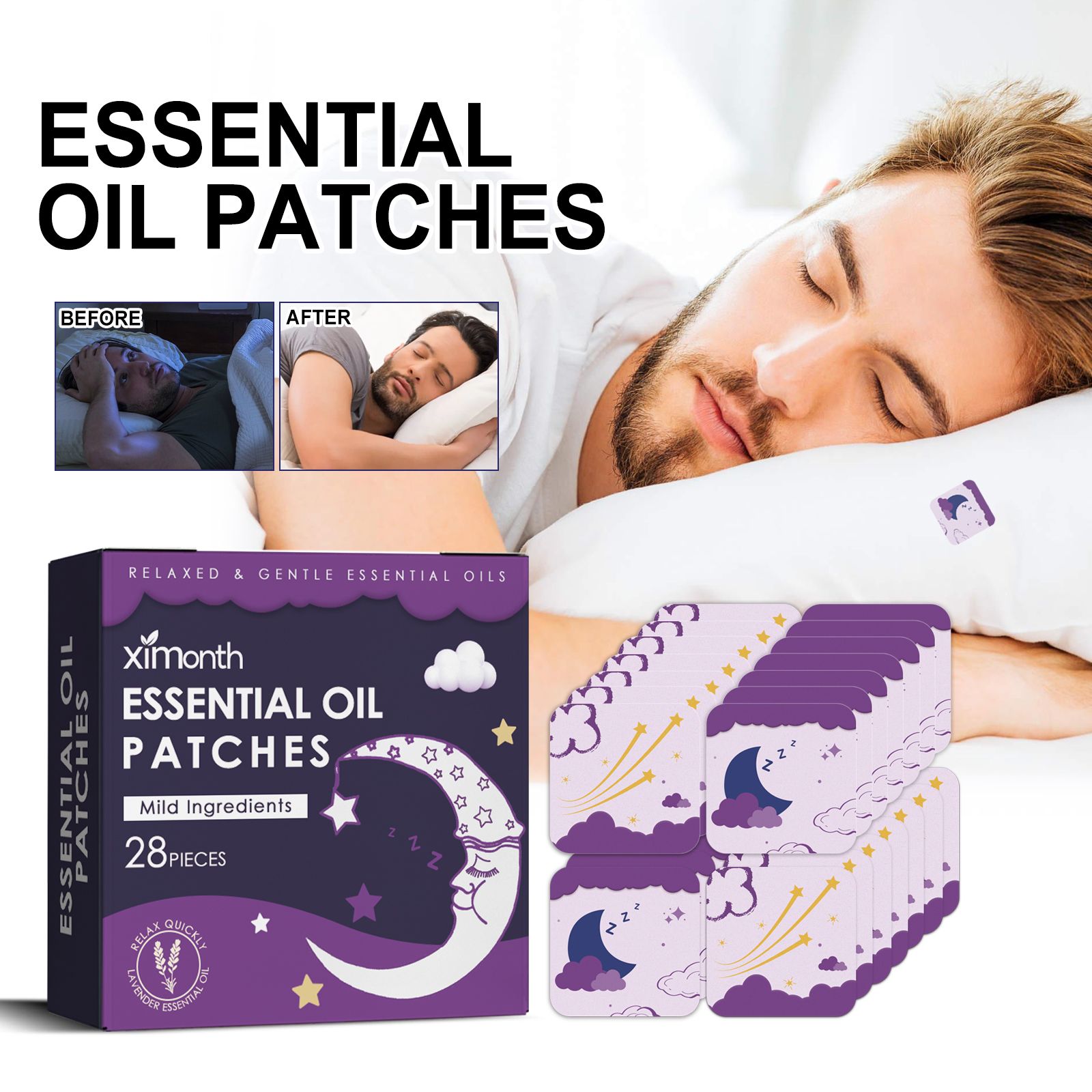 Our Smoke Essential Oil Good Night Patch contains lavender extract, sage extract, and peppermint oil.It can improve the overall quality of sleep, sleep comfortably all night long and make your body healthier.It is easy to use: when it`s time to go to sleep, just apply the essential oil patch to your pillow or collar and rest normally.Use it to help you relax, fall asleep quickly, and enjoy a nice and cozy full night`s sleep.